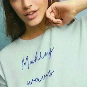 ANTHROPOLOGIE By Charli Cashmere Sweater Embroidered Making Waves Women Med