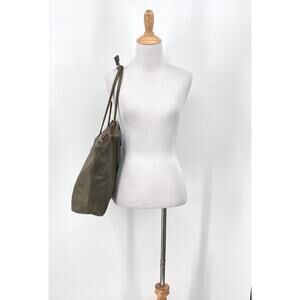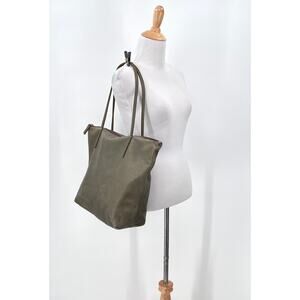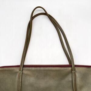 ANTHROPOLOGIE CAMPOS Leather Tote Women Olive Green large Double Handle Shoulder