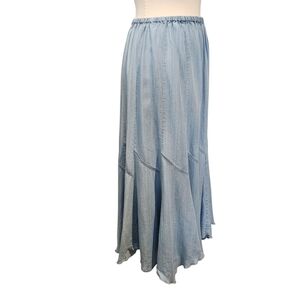 ANTHROPOLOGIE CHELSEA & THEODORE LYOCELL CHAMBRAY MIDI SKIRT BOHO SZ L
