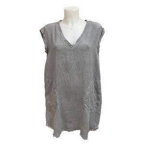 ANTHROPOLOGIE CLOTH & STONE TENCEL V NECK SHIFT DRESS, raw hem gray sz small