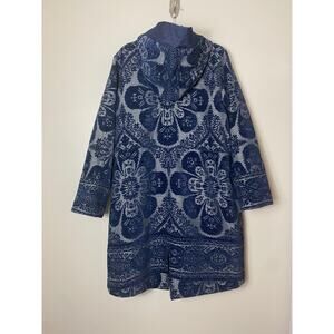 ANTHROPOLOGIE COAT BLUE CHENILLE TAPESTRY PARKA LONG JACKET BOHO OVERSIZED FALL
