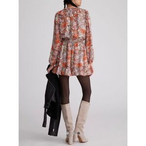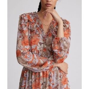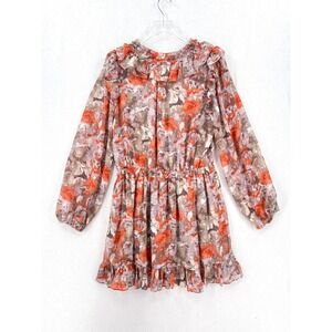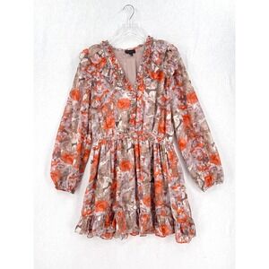 ANTHROPOLOGIE CURRENT AIR Ruffled Floral Mini Dress Womens Large Gray Orange