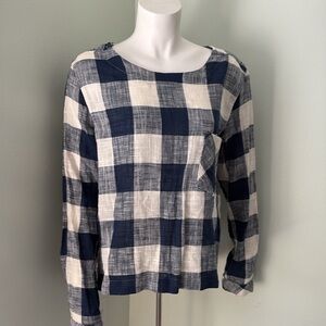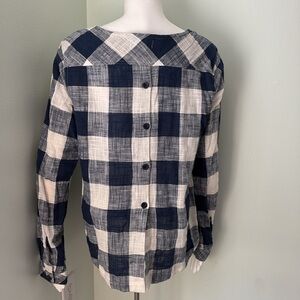 ANTHROPOLOGIE Cloth & Stone Buffalo Plaid Linen Top Button Back Large