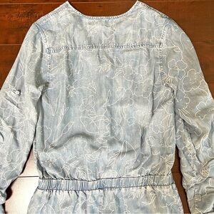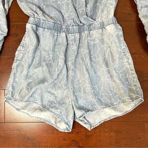 ANTHROPOLOGIE Cloth & Stone Chambray Romper Blue Long Sleeve Size Small