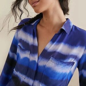 ANTHROPOLOGIE Cloth & Stone Classic Buttondown Watercolor Pocket Long Sleeve Top