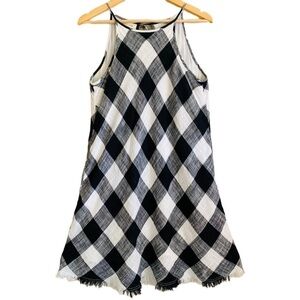 ANTHROPOLOGIE Cloth & Stone Linen Blend Gauzy Frayed Gingham A-Line Dress Size S