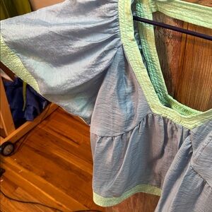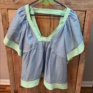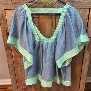 ANTHROPOLOGIE Colorblock Baby Doll Top Blue & Green Size Large.