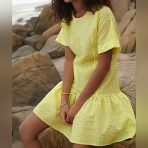 ANTHROPOLOGIE Corey Lynn Calter Mariah Textured Drop Waist Shift Mini Dress Yellow Green Women's Size Small