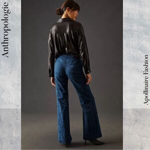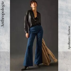ANTHROPOLOGIE DAMASK JACQUARD FLARE PANTS IN NAVY SIZE 10 NWOT