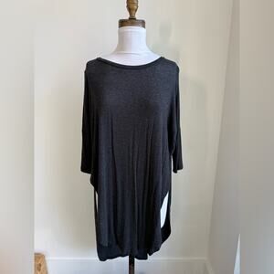 ANTHROPOLOGIE DARK GRAY DELETTA TUNIC TOP HIGH LOW 3/4 SLEEVE XS