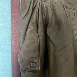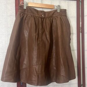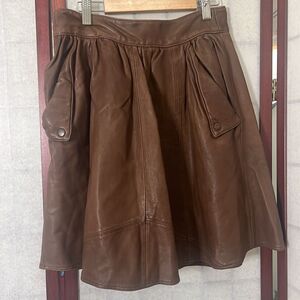 ANTHROPOLOGIE DAUGHTERS OF LIBERATION BROWN LEATHER GATHERED SKIRT SIZE 2