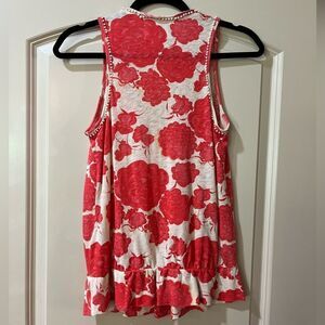 ANTHROPOLOGIE DELETTA Sleeveless Floral Top Red Cream Women’s Size XS