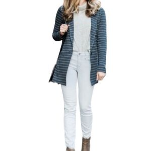 ANTHROPOLOGIE DOLAN Blazer Jacket Striped Long Knit Gray White Size XS Like new