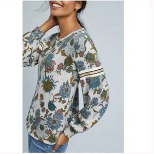 ANTHROPOLOGIE DOLAN TAGAWA GRAY FLORAL PRINT MULTICOLOR LONG SLEEVE SWEATSHIRT