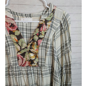 ANTHROPOLOGIE Darlene Plaid Peasant Blouse, sz Small
