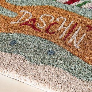 NWT Daschin' Dashing Through The Snow Doormat Dachshund Holiday Christmas Festive Doormat Door mat Coconut coir; vinyl backing Intended for use in a sheltered outdoor area Sweep or rinse clean Imported Dimensions 30" x 13"