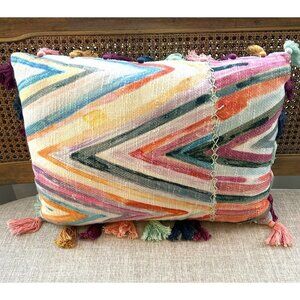 ANTHROPOLOGIE Decorative Pillow Multi-Colored Striped With Tassels