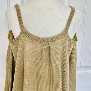 ANTHROPOLOGIE Deletta Millipa Cold Shoulder Waffle Knit Olive Swing Top - Med