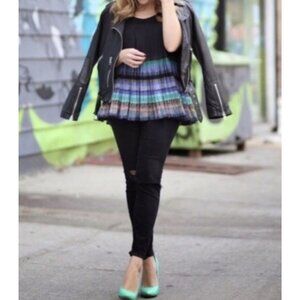 This tank is stunning! Black at the top with gorgeous pleating / accordion multicolor detail at the bottom. Excellent preowned condition with no stains or flaws!