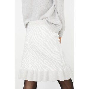 ANTHROPOLOGIE New Dolan Zebra Ruffled Knit Mini Skirt Plus 1X 2X Brand: Anthropologie Dolan Left Coast Online Exclusive #60020013 Founded in 2004, Jodie Dolan's eponymous womenswear line incorporates timeless, travel-inspired aesthetics into its designs Ruffled Hem Condition: New with tags Animal Print Gray Motif 41% nylon, 39% polyester, 15% acrylic, 5% wool Dry Clean Only Type: Mini Skirt Closure: Pull On 1X: Waist 35", Hip 52", Length 20.5" 2X: Waist 39", Hip 55", Length 22" 14410-8