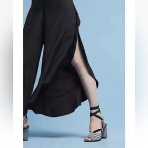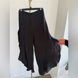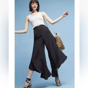 ANTHROPOLOGIE ELEVENSES ANTILLES WIDE LEG BLACK RUFFLE PANTS SIZE 0