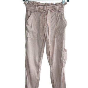 ANTHROPOLOGIE ELEVENSES ROMY WOMEN'S LINEN BLEND PAPERBAG PANTS SIZE XS Zip fly button closure, High waisted light pink pants,tapered legs, tie waist belt , pockets. Linen blend, pre-owned excellent condition. rise 10.5", inseam 30", waist 26".