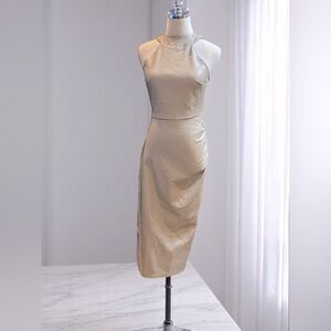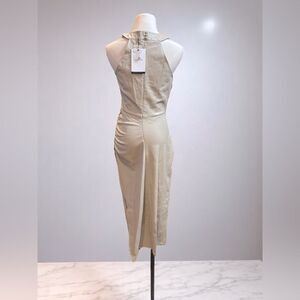 EN SAISON NWT Beige Faux Leather Halter Midi Dress