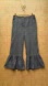 Stylish blue ruffle hem pants. Perfect for a chic look.