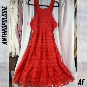 ANTHROPOLOGIE EYELET RUFFLED HALTER TOP MIDI DRESS IN CORAL BLUSH NEW SIZE 8