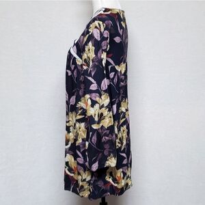 Anthropologie Entro Blue Purple Boho Floral Flare Sleeve Keyhole Swing Dress.