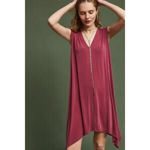 ANTHROPOLOGIE Eri + Ali Briella Tunic Dress, Size Small, Purple Pink Red Color, Relaxed Fit, Sleeveless, V-Neck V-Back, Ruched Shoulder Detail, A-Line, Soft, Fluid Material, Knee Length, Excellent Condition with No Flaws or Signs of Wear.
