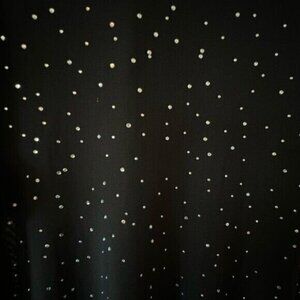 •ADDITIONAL INFORMATION: Pullover, rear keyhole with button closure, mesh with rhinestones all over, black panel around bust, can also be worn as a dress