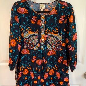 ANTHROPOLOGIE FIG & FLOWER FLORAL TUNIC SIZE M