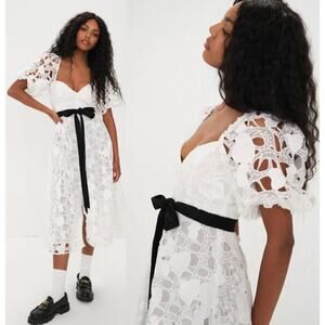 ANTHROPOLOGIE FOR LOVE AND LEMONS WHITE EMBROIDERED LACE MIDI DRESS Small