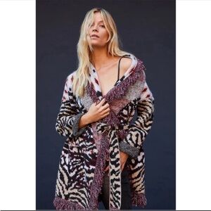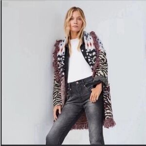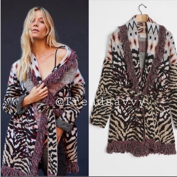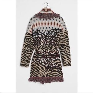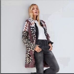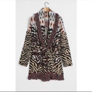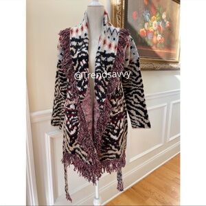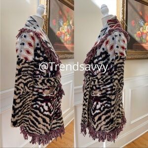 NWT ANTHROPOLOGIE BLACK PALOMA FRINGED WRAP TIE ZEBRA CARDIGAN SWEATER COAT TOPS SIZE XS