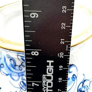 Keywords: vintage pitcher, porcelain creamer, blue floral pitcher, gold accent pitcher, decorative jug, vintage kitchen decor, floral creamer, gold handle pitcher, white and blue pitcher, vintage serveware, porcelain jug, floral jug, gold trim pitcher, tea party
