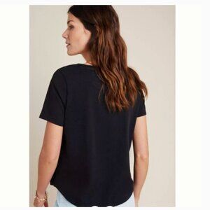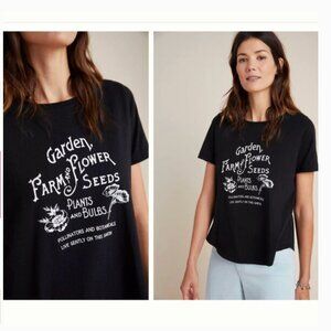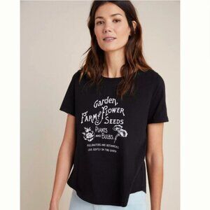 ANTHROPOLOGIE Farm and Flower Black Graphic T-Shirt 100% Cotton