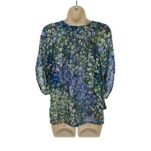 ANTHROPOLOGIE Fei Women’s Size 2 Silk Blue Floral Elbow Sleeve Blouse