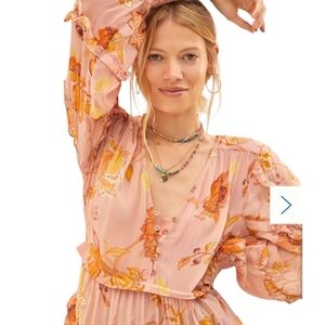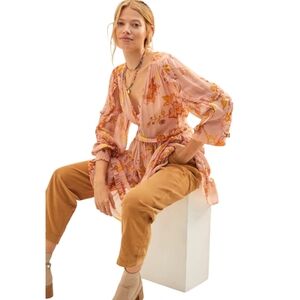 ANTHROPOLOGIE Floral Print Sheer Boho Tunic Top Sz XS