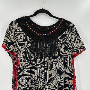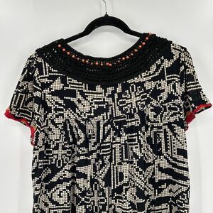 ANTHROPOLOGIE Floreat Abelia Black White Embroidered Fringe Boho Dress Large