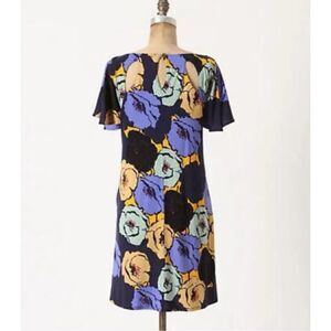 ANTHROPOLOGIE Flutter Sleeve Floral Cut-Out Silk Blend Dress M