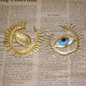 ANTHROPOLOGIE GAZE HOOP GOLD EYES EARRINGS