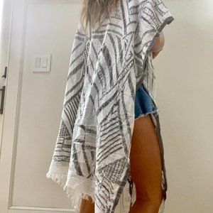 ANTHROPOLOGIE Grey and White Kimono With Silver Edge and Fringe Botttom