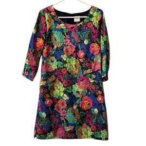 ANTHROPOLOGIE HD IN PARIS Floral Dress Size Measured Zip Colorful 3/4 Sleeve
