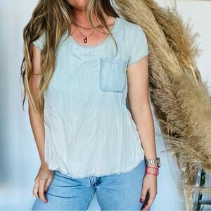 ANTHROPOLOGIE HOLDING HORSES Blue Chambray Ombre Denim Tee Shirt Blouse Top S