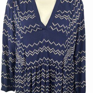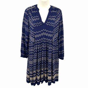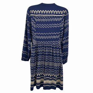 ANTHROPOLOGIE HOLDING HORSES NAVY BLUE & BEIGE CHEVRON PRINT DRESS - S