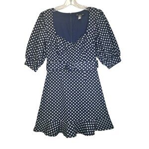 ANTHROPOLOGIE HUTCH Dress Women's 6 Floral Navy Polka Dot Puff Sleeve Belt Mini