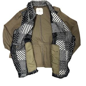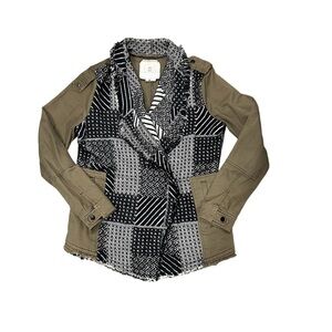 ANTHROPOLOGIE Hei Hei Womens Small fringe fieldwork jacket Green Black White EUC