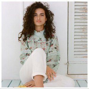 Noticing the brand’s unique combination of traditional & contemporary textures, Anthropologie became the 1st major retailer to add Hemant & Nandita to their collection. Inspired by architecture & global culture, the label carries this juxtaposition of old & new throughout their “East meets West” line, embellishing intricate pattern-work onto silhouettes.Featuring a delicate lace trim, this floral blouse is one you’ll treasure for years to come