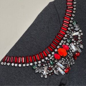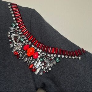 Keywords: Anthropologie sweatshirt, jeweled shoulder sweater, Hemant and Nandita, embellished pullover, gray sweatshirt, chic casual wear, size small